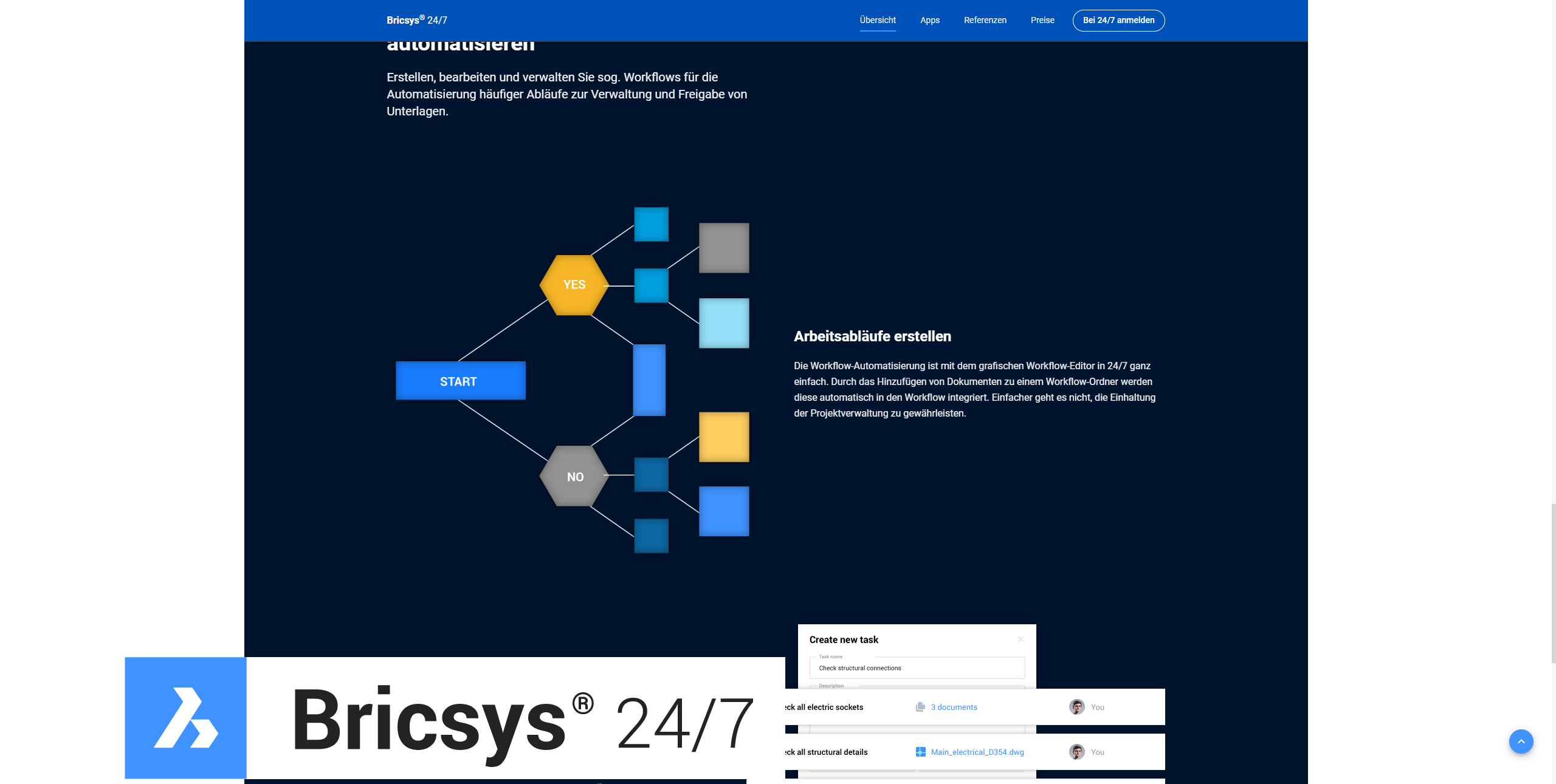 Bricsys 24/7 Enterprise ist auch eine ideale Modell-Verwaltung für Ihre BIM-Projekte. Damit können Sie Ihre 3D-Modelle in Echtzeit betrachten, schneiden und kommentieren. Und Projektmanager können mit einem einfachen grafischen Drag-and-Drop-Editor Workflows erstellen, die sich wiederholende Aufgaben automatisieren.