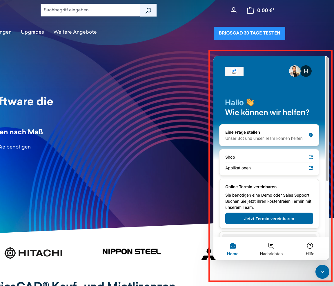 Nutzen Sie unsere innovative Chat-Lösung, indem Sie auf das Chat-Icon in der unteren rechten Bildschirmecke klicken.