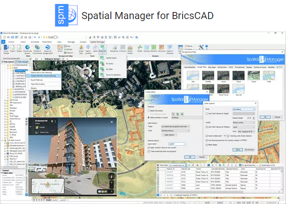 Spatial Manager™ for BricsCAD ist ein leistungsstarkes BricsCAD-Plug-In für BricsCAD-Benutzer, die räumliche Geodaten auf einfache, schnelle und kostengünstige Weise importieren, exportieren, umwandeln und verwalten müssen. Dazu gehören viele Funktionen, die in BricsCAD bisher nicht verfügbar waren.
